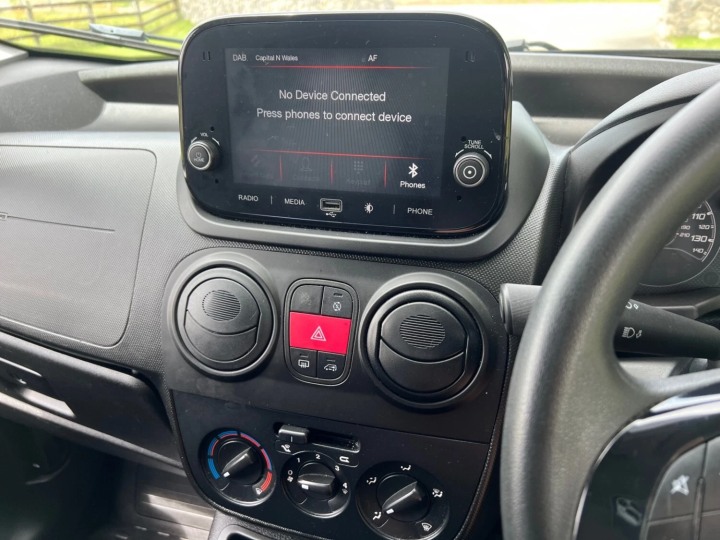 FIAT FIORINO CARGO 1.3 MULTIJET 80PS ADVENTURE L1 SWB VAN 70 REG 56,300 MILES. ONE OWNER (EX GLASGOW AND CLYDE NHS), SERVICE HISTORY, SPARE KEY, REMOTE CENTRAL LOCKING, ELECTRIC WINDOWS, ELECTRIC MIRRORS, MULTIFUNCTIONAL STEERING WHEEL, TOUCHSCREEN RADIO, BLUETOOTH, USB/AUX INPUT, AIR CON, REAR PARKING SENSORS, ROOF RAILS, MUD FLAPS.PLY LINED WITH RUBBER FLOOR, BULKHEAD, SIDE LOADING DOOR. *EURO 6*