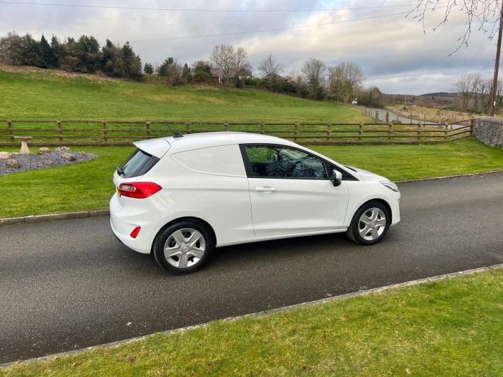 FORD FIESTA 1.5 TDCI 85PS BASE VAN 70 REG ONLY 35,700 MILES. ONE OWNER, SERVICE HISTORY, SPARE KEY, REMOTE CENTRAL LOCKING, ELECTRIC WINDOWS, ELECTRIC MIRRORS, AUTOMATIC LIGHTS, MULTIFUNCTIONAL STEERING WHEEL, TOUCHSCREEN RADIO, APPLE CARPLAY/MIRRORLINK, SAT NAV, BLUETOOTH, USB INPUT, AIR CON, RUBBER MAT IN REAR, BULKHEAD. *EURO 6*
