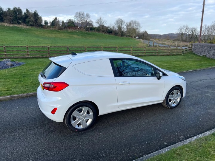 FORD FIESTA 1.5 TDCI 85PS BASE VAN 70 REG ONLY 27,700 MILES. ONE OWNER, SERVICE HISTORY, SPARE KEY, REMOTE CENTRAL LOCKING, ELECTRIC WINDOWS, ELECTRIC MIRRORS, AUTOMATIC LIGHTS, MULTIFUNCTIONAL STEERING WHEEL, TOUCHSCREEN RADIO, APPLE CARPLAY/MIRRORLINK, SAT NAV, BLUETOOTH, USB INPUT, AIR CON, RUBBER MAT IN REAR, BULKHEAD. *EURO 6*